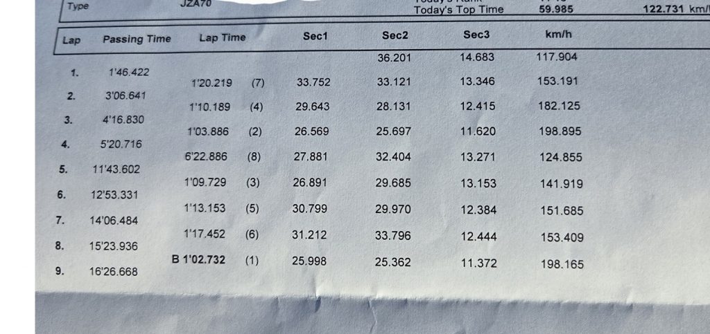 方向性としては良さそうなので、もう少しこのセットアップをベースに慣れていって、とりあえず筑波1秒台を目指していこうと思います。