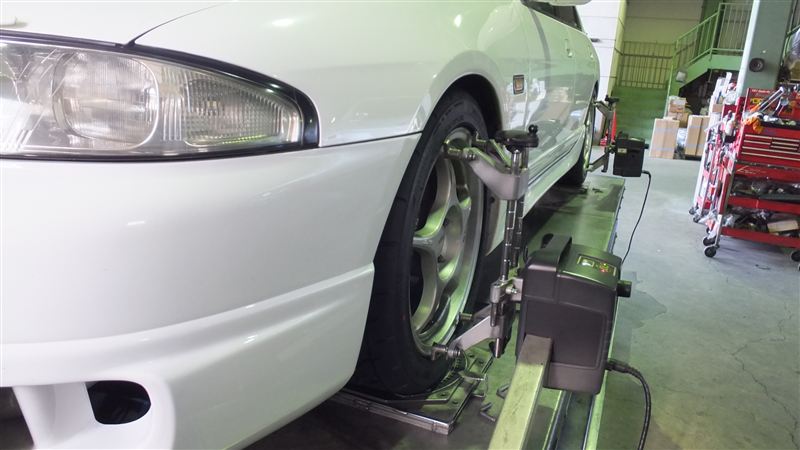 車種により違いますが車高を下げるとキャンバー角が付きタイヤの内側が減りやすくなります。同時にトー角タイヤの進行方向が変化しまっすぐ走らない・ハン ドルが取られる・路面の抵抗が増えるなど様々な症状が現れます。通常車種はアライメント調整込みで\9800-税抜 でやってますのでお問い合わせ下さい。