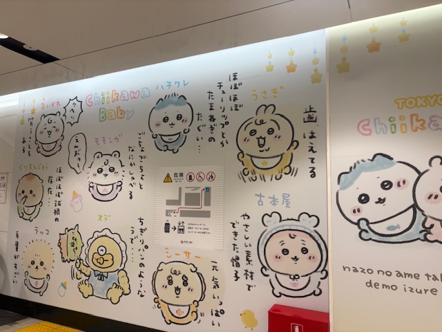 東京駅の壁や柱などがちいかわ仕様になっていて、見ているだけでもワクワクしました。