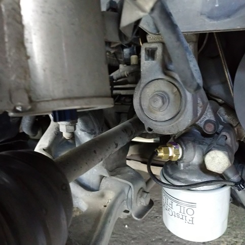 油温センサーは純正のメクラ蓋を外してアダプターと一緒にとりつけます。