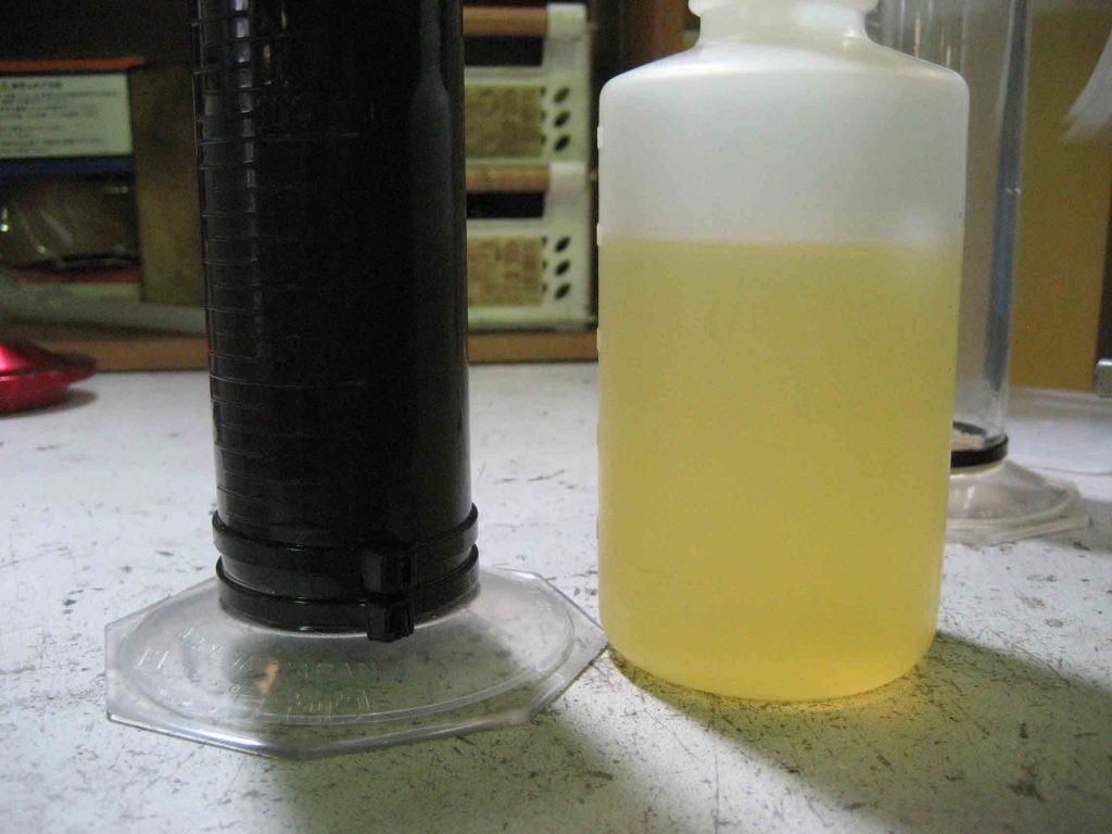 最後に新車から保管していたショックのオイルと新品オイルのちがいを