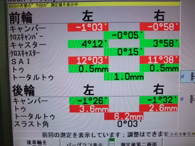 しかし、見ての通り、リアのアライメント数値がイマイチです。