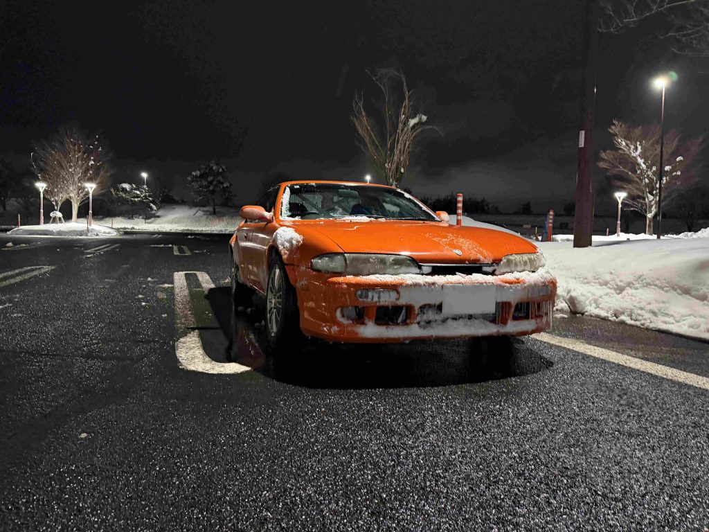 一人で運転するのは雪で先が全然見えないし街頭もないしで
