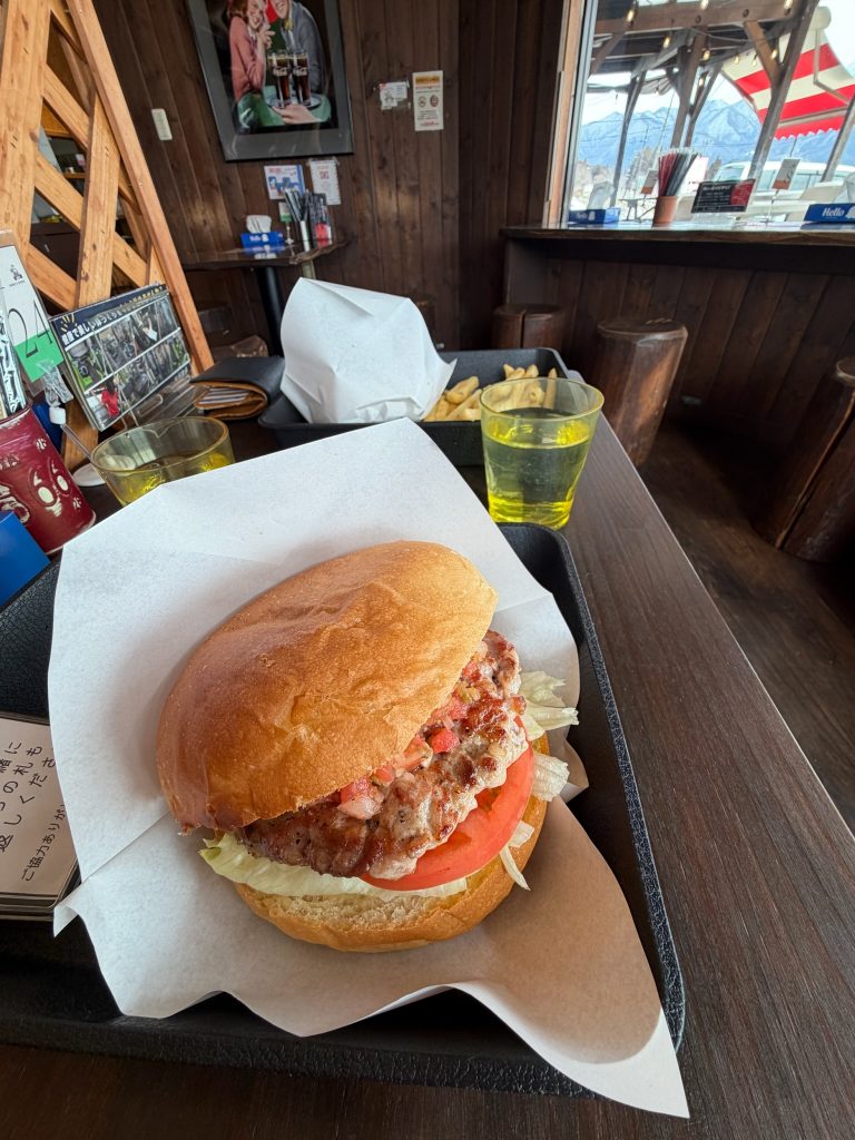 この近くに自分がいつもスノボ帰りに食べるハンバーガ屋でお昼を食べました