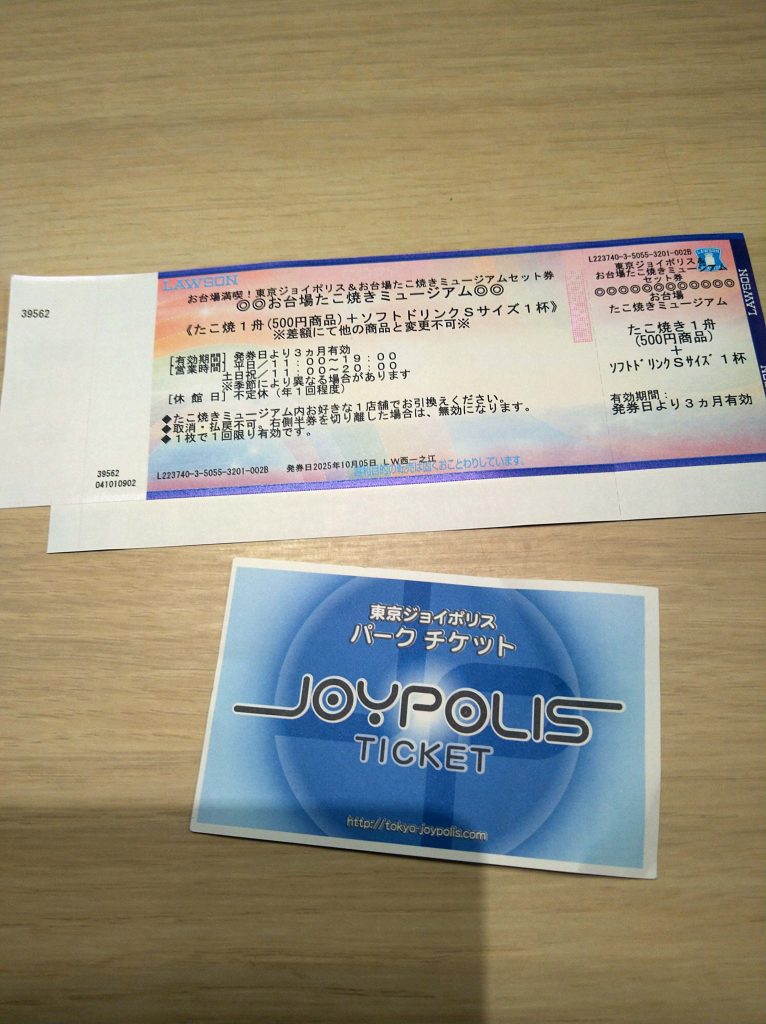 ローソンチケットでアトラクション乗り放題+たこ焼き1舟付きを購入。